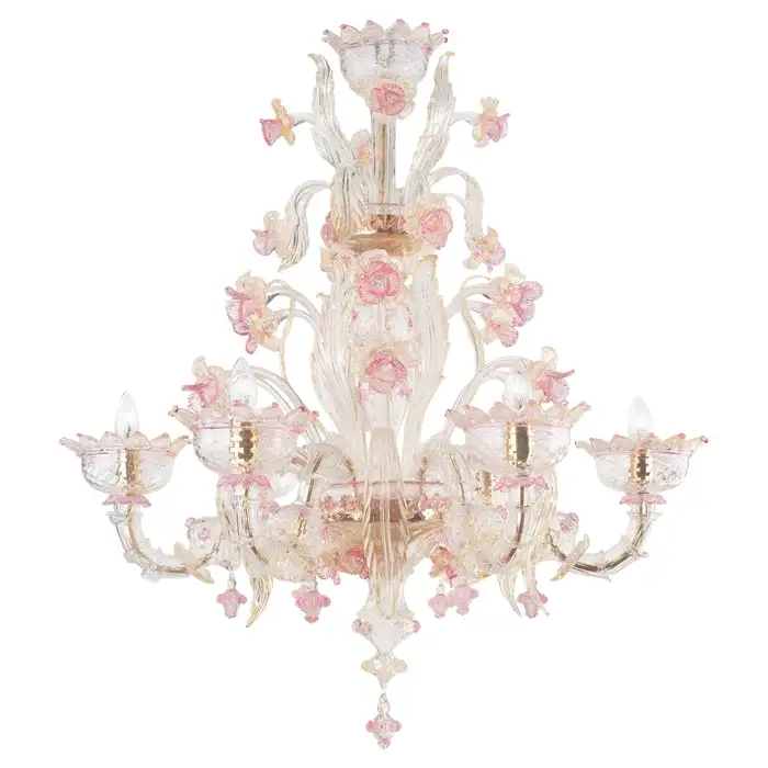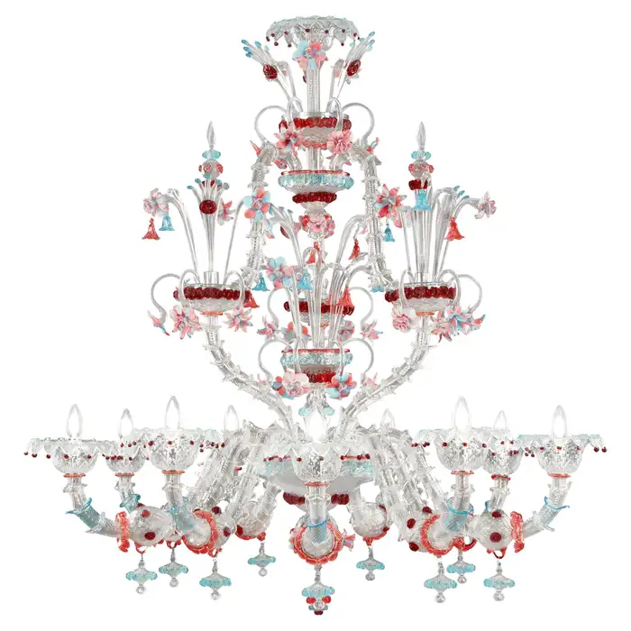 During the Venetian Baroque period, the Murano artisans developed their most iconic chandelier style: Rezzonico (also called Ca’ Rezzonico after the famous Venetian palazzo).